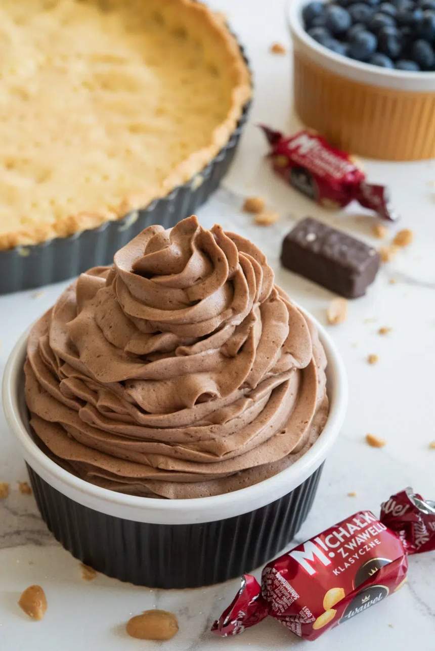 Krem z Michałków klasycznych jest super smaczny, stabilny i uniwersalny. Sprawdzi się idealnie zarówno do tarty na słodko, dekoracji muffinek, babeczek czy jako warstwa w torcie. Jest niezwykle prosty do wykonania.