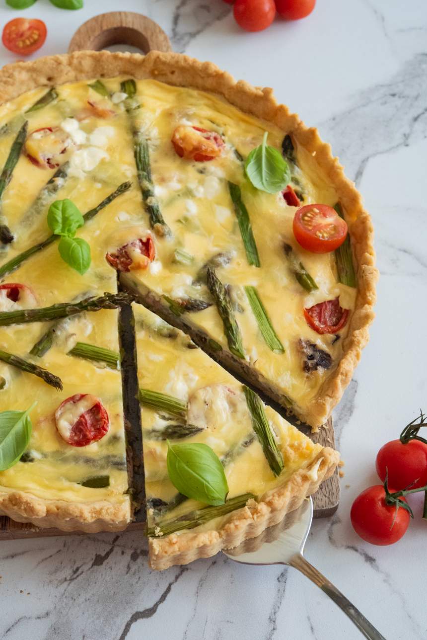 Tarta ze szparagami to pomysł na bardzo smaczny i sycący obiad lub kolację. Kolorowa, sezonowa i pełna smaku. Farsz serowy z dodatkiem chrupiących szparagów, podsmażonego boczku oraz czerwonej cebuli to strzał w dziesiątkę.