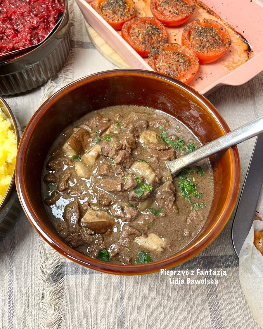 Pieprzyć z Fantazją dodał(a) nowy wpis, Gulasz wołowy z grzybami i czerwonym winem 1 miesiąc, 1 tydzień temu