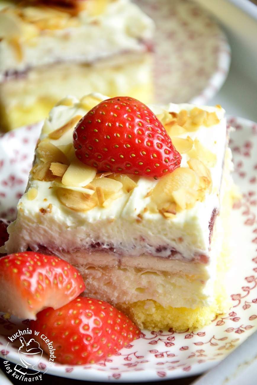Słodki deser kokosowo- śmietankowy z dodatkiem gofrowanych wafli i dżemem truskawkowym. Jeden kawałek w zupełności wystarczy, by wszelkie smutki odeszły w kąt, a uśmiech mimo typowo jesiennej aury zagościł[…]