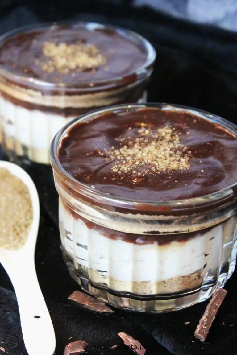 Przepis na kokosowy deser w pucharku – czyli deserek kokosowa Princessa. Desery składają się z herbatników, kokosowego kremu budyniowego oraz polewy z białej czekolady.