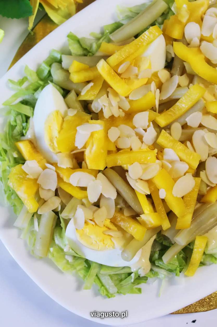 Sałatka Złota Polana to sałatka z fasolką szparagową, żółtą papryką, jajkami i sałatą lodową. Dodatek płatków migdałowych i musztardowego sosu sprawia, że sałatka smakuje wybitnie! Jest niezwykle świeża i kolorowa[…]